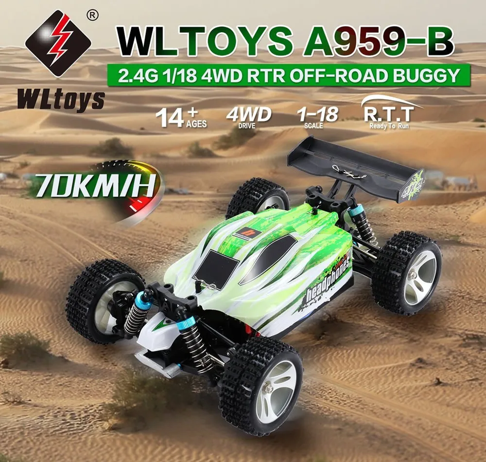 WLtoys A959 A959-B 1:18 RC Racing Car 4WD 70KM/H High Speed 2.4GHz Remote Control Drift Off Road Vehicle Buggy Boys Toys Kids Gift